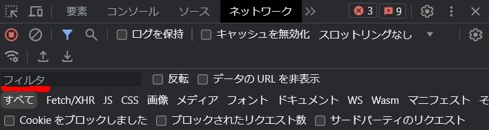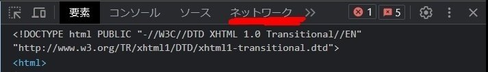 ネットワークタブを開く