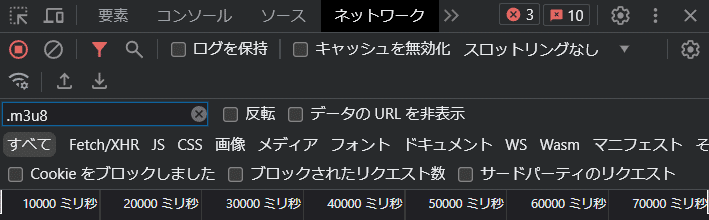 フィルタのタブに ".m3u8"と入力する
