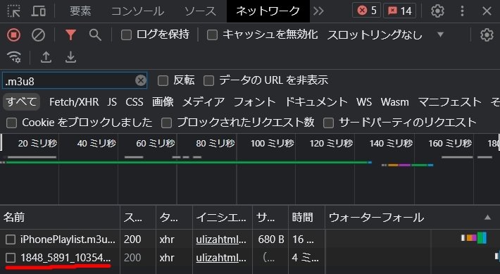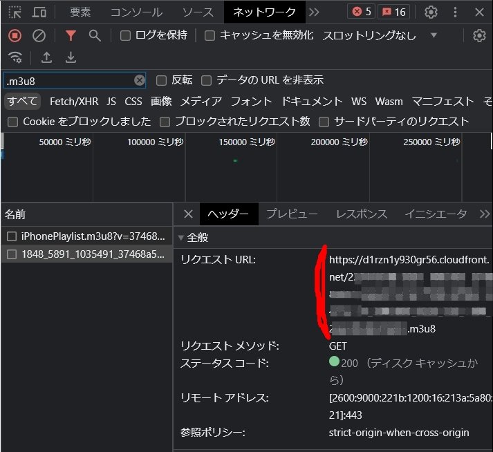 ここまでで摘出したのがm3u8ファイル。