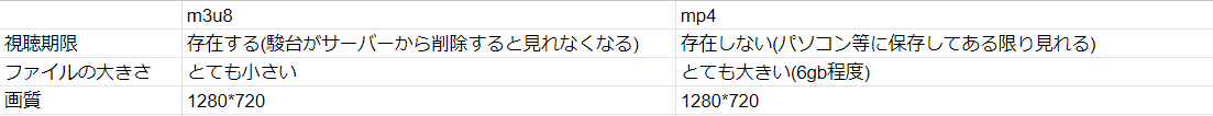 m3u8ファイルとmp4ファイル